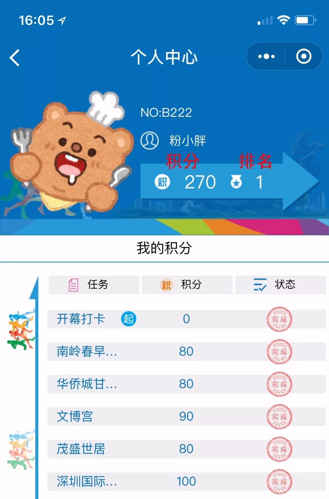 进入个人中心,可以看到所有已完成的任务列表,当前的积分以及排名。