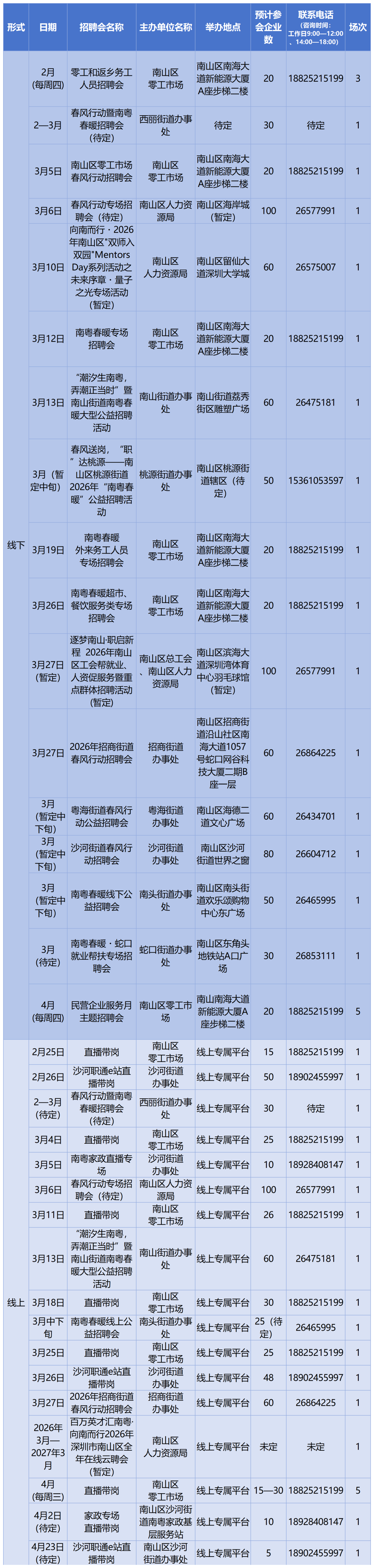 (上述计划后续可能根据实际情况调整,建议求职者参加现场招聘前拨打电话确认)