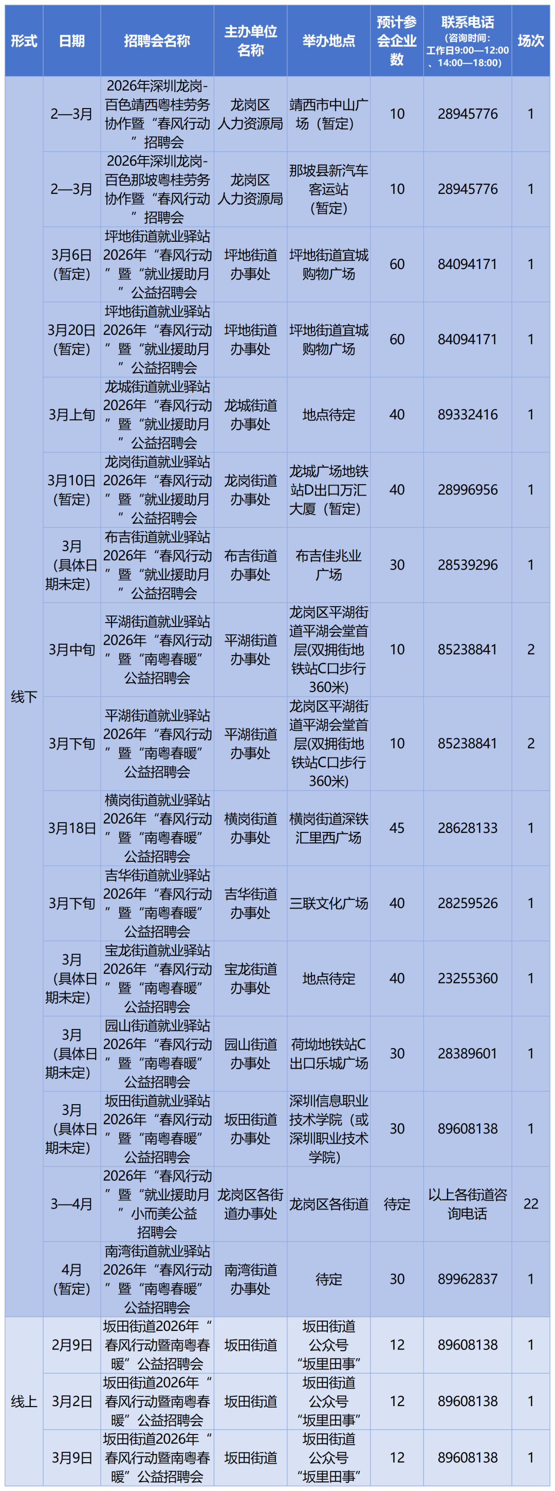 大力开展春风行动暨南粤春暖专项招聘活动全市将陆续开展公益性招聘活动391场,其中线下212场,线上179场。