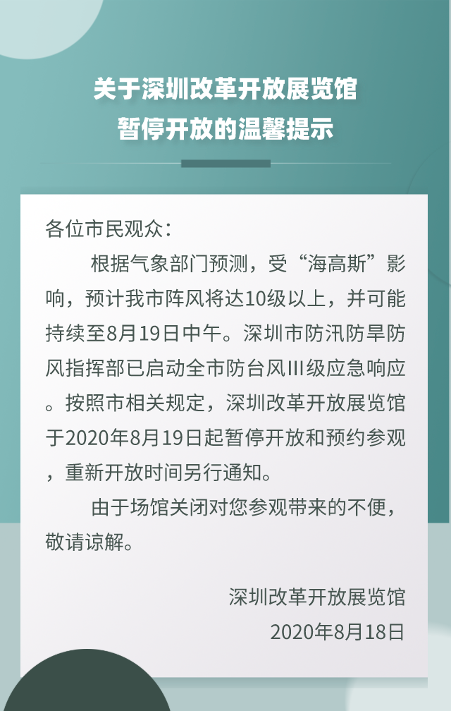 2020深圳改革开放展览馆暂停开放温馨提示